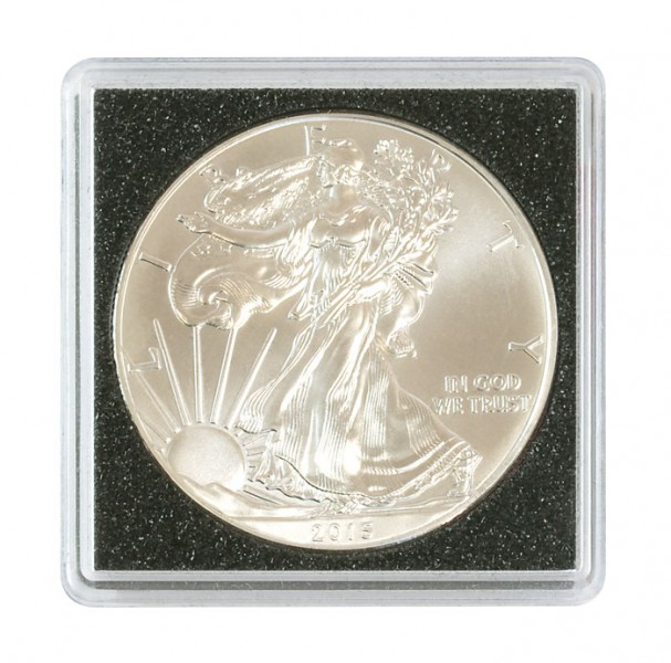 Das einheitliche Aussenformat (50 x 50 mm) der Münzkapseln ermöglicht es, Münzen unterschiedlicher Durchmesser in einem Sammelsystem unterzubringen.